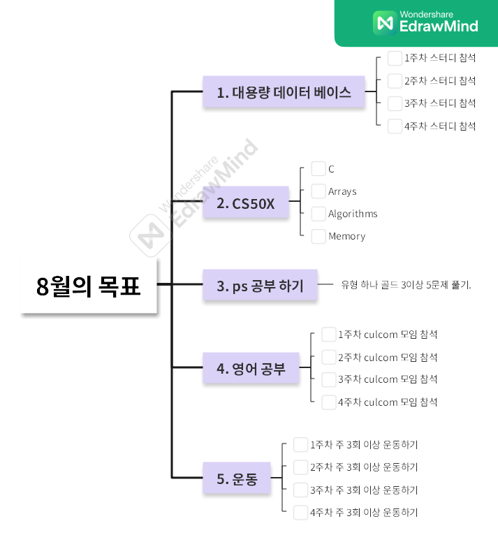 그래서 정리하게 된 8월의 목표는 다음과 같다.