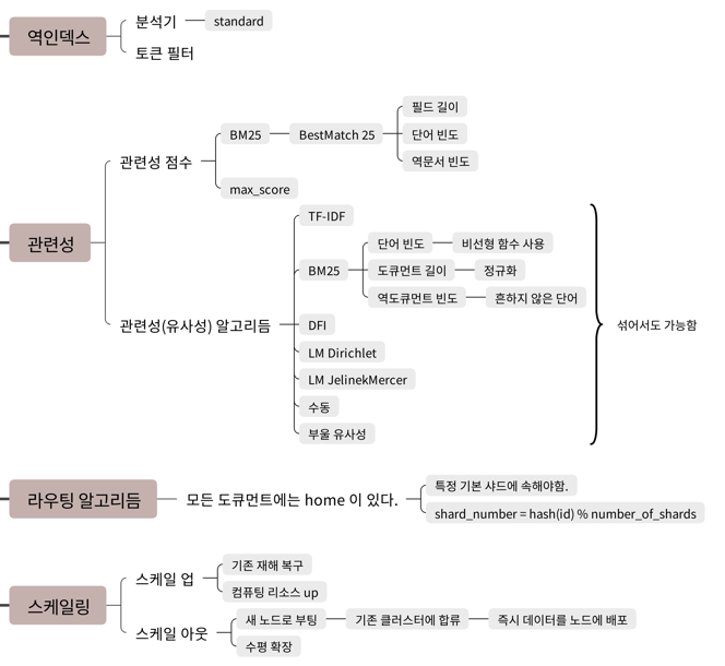- 검색: 역인덱스를 통해 빠른 검색이 가능하고, 각 노드의 샤드를 통해 병렬로 처리됩니다.