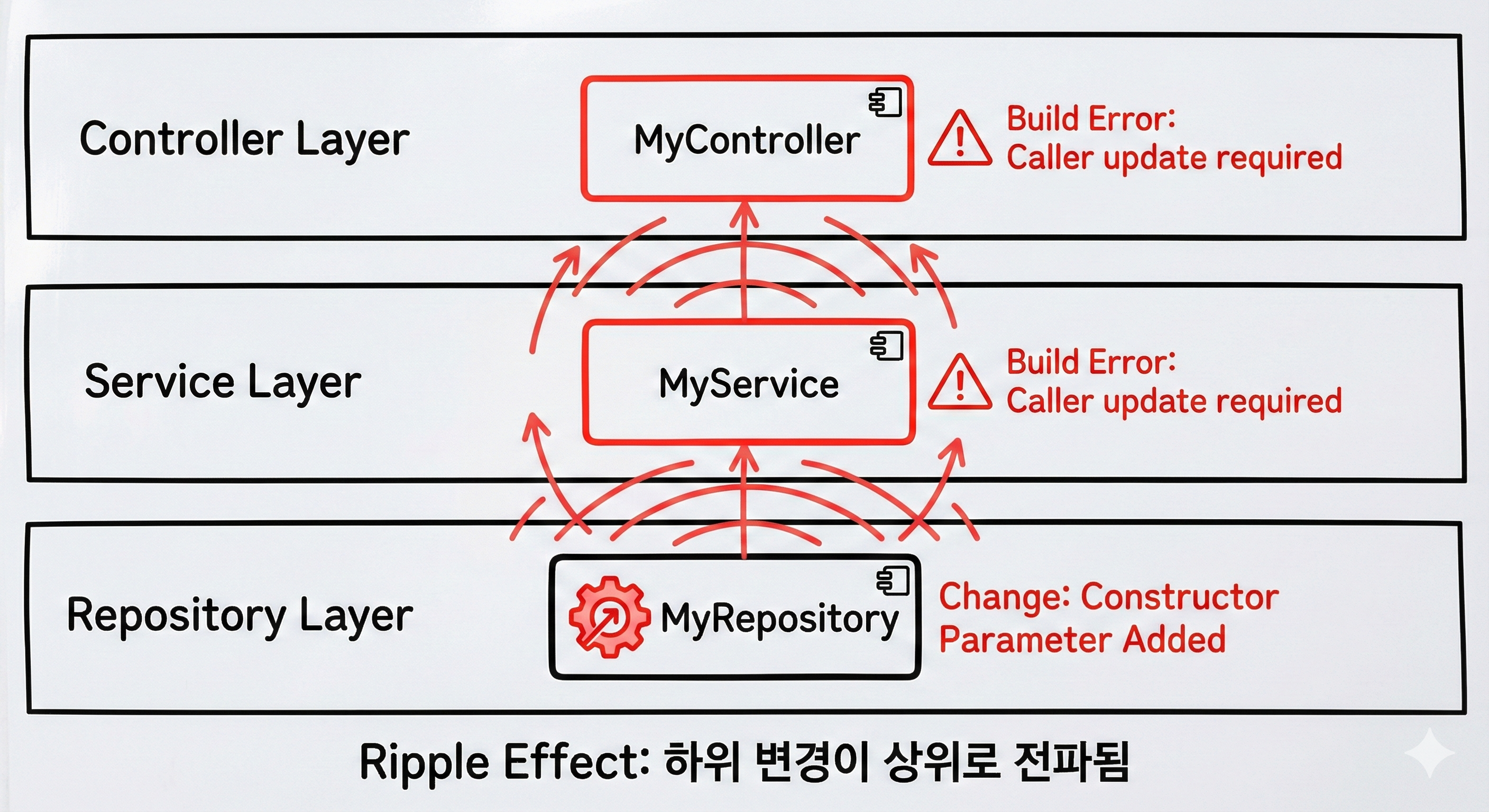 - 구조 변경 시 수정 범위가 폭발적으로 늘어납니다
